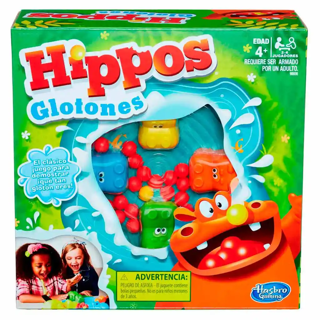 Juego de Mesa Hippos Glotones Clásicos de HasbroEl hipopótamo hambriento y sus amigos están listos para unirse a la locura de la comida, y cuando sueltes todas las canicas en la base del juego, ¡saltarán sobre ellas mordisqueándolas! ¡El hipopótamo que mastica más canicas gana! Ahora con un empaque audaz y renovado. La base del juego viene con 4 hipopótamos, 20 canicas de plástico, cubierta para almacenar e instrucciones