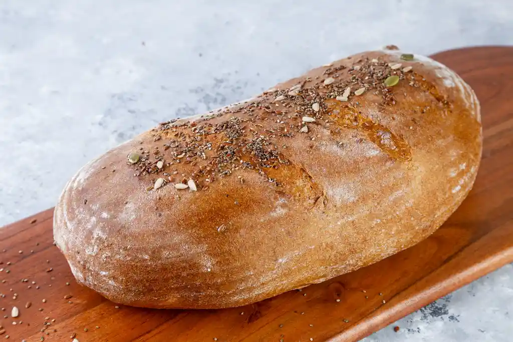 Hogaza artesanal integral de Masa Madre y Multisemillas. Gran tamaño, larga fermentación, sabor y textura únicos.