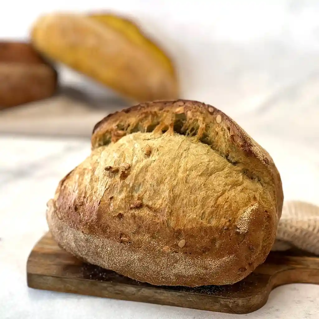 Hogaza de Masa Madre artesanal, elaborada con Espinacasy Semillas de Maravilla, con sólo 6 ingredientes. Vegano, sin ingredientes de origen animal Ideal para dar un toque gourmet a tus sandwiches, tablas de picoteo, y más. ¿Conoces nuestra Línea de Panes de Masa Madre? Elaborada especialmente por nuestro Maestro Panadero, encontrarás una gran variedad de sabores gourmet, en base a ingredientes naturales. ¡No te pierdas sus originales sabores! Formato de Venta: Fresco Peso Cocido Contiene Gluten