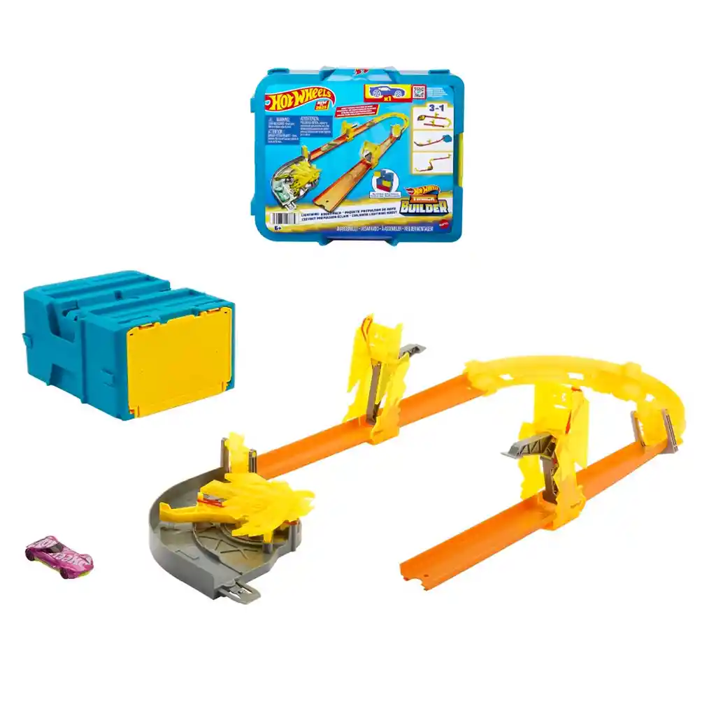 Construye y reconstruye una pista ultrarrápida con el pack de Hot Wheels que viene en una caja de almacenamien...Ver más