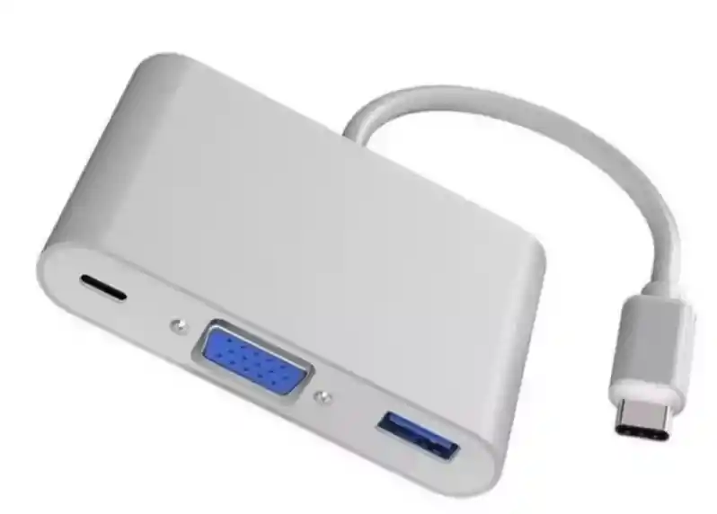 SOMOS MIKI IMPORTS Características: - Tipo: Adaptador - entrada: USB 3,1 tipo C macho - salida: Tipo C hembra - salida: VGA hembra - salida: USB 3,0 hembra - Resolución 4K - Dispositivos compatible: Apple 2017 MacBook 2016 MacBook Pro MacBook 12 (2015) ( modelos con puertos tipo c) teléfonos con puerto tipo C (MODELOS que efectivamente transmitan VIDEO por el puerto Tipo-C)