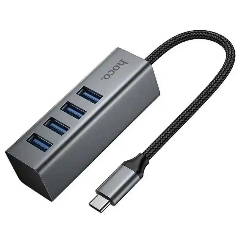 Hub adaptador 4 en 1. Convierte un solo puerto Tipo-C en 4 puertos USB 3.0. Ideal para ampliar al instante la conectividad de tu notebook, tablet o computador. Velocidad de transferencia de hasta 5 Gbps, podrás usar pendrives, discos externos, mouse, teclado o receptores Wi-Fi sin interrupciones. Sistema Plug & Play (no requiere drivers). Conecta múltiples accesorios USB al mismo tiempo.