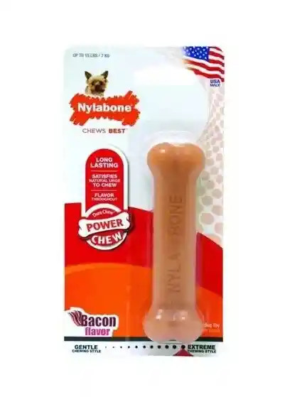DESCRIPCION DEL PRODUCTO: Hecho con nylon resistente, este juguete Power Chew fue diseñado para desafiar incluso a los masticadores más agresivos. Este juguete masticable para perros duradero y duradero es el masticable de ocupación perfecto para ayudar a combatir el aburrimiento, aliviar el estrés y la ansiedad, ayudar a controlar el peso y fomentar hábitos de masticación saludables. ¡Este toy de hueso de perro está hecho con un sabor irresistible para mantener satisfechas las papilas gustativas de tu mejor amigo! Además, ayuda a promover la salud dental al reducir la placa y el sarro a medida que los perros mastican. Este Power Chew está disponible en una variedad de tamaños para que puedas encontrar el perfecto para tu mejor amigo. ¡Sigue adelante y dale a tu perro este clásico juguete masticable Nylabone! Hecho de nylon resistente y duradero para masticadores agresivos. Hecho de nylon resistente y duradero para masticadores agresivos Ayuda a limpiar los dientes y refrescar el aliento Contiene un delicioso sabor original en todo Desalienta la masticación destructiva Orgullosamente hecho en los EE.UU. Para perros de hasta 7 kilos Tamaño: 9,5x7,2x1,9