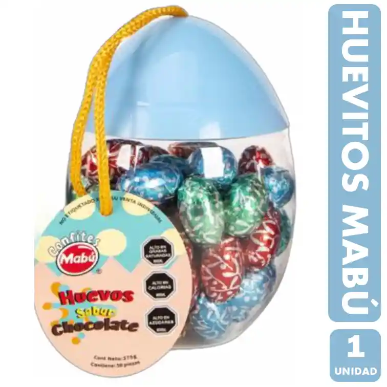 Exquisitos huevos de chocolate mabú. Este envase contiene 50 Unidades.