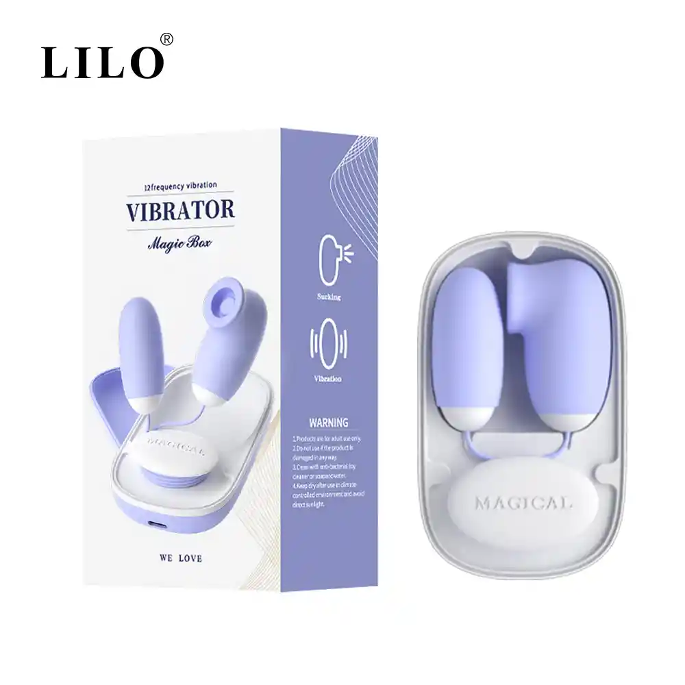 Una cajita tan discreta que no te imaginaras lo que hay dentro, dos huevos vibradores de potente motor y material suave, uno siendo un travieso huevito vibrador y el otro un succionador de clítoris o pezones! Este innovador producto te da la discreción si buscas y la mayor estimulación en un solo lugar, con 12 modos de frecuencia y motores independientes. Puedes usar los dos huevos al mismo tiempo o por separado! El placer está en tus manos. Este juguete es a prueba de agua y su caja magnética es recargable. Características: Color: Morado Tamaño: Longitud total cables 62 cm Longitud total caja 12 cm Diámetro Max. de Huevos 7,5 – 2 cm Funciones de modelo: Huevo vibrador y succionador Material: Silicona +ABS Carga: Batería de litio recargable Batería de litio: Tiempo de carga 150 min, tiempo de uso 90 min Frecuencia: 12 modo de vibración Certificación: CE Aprueba de agua: Si