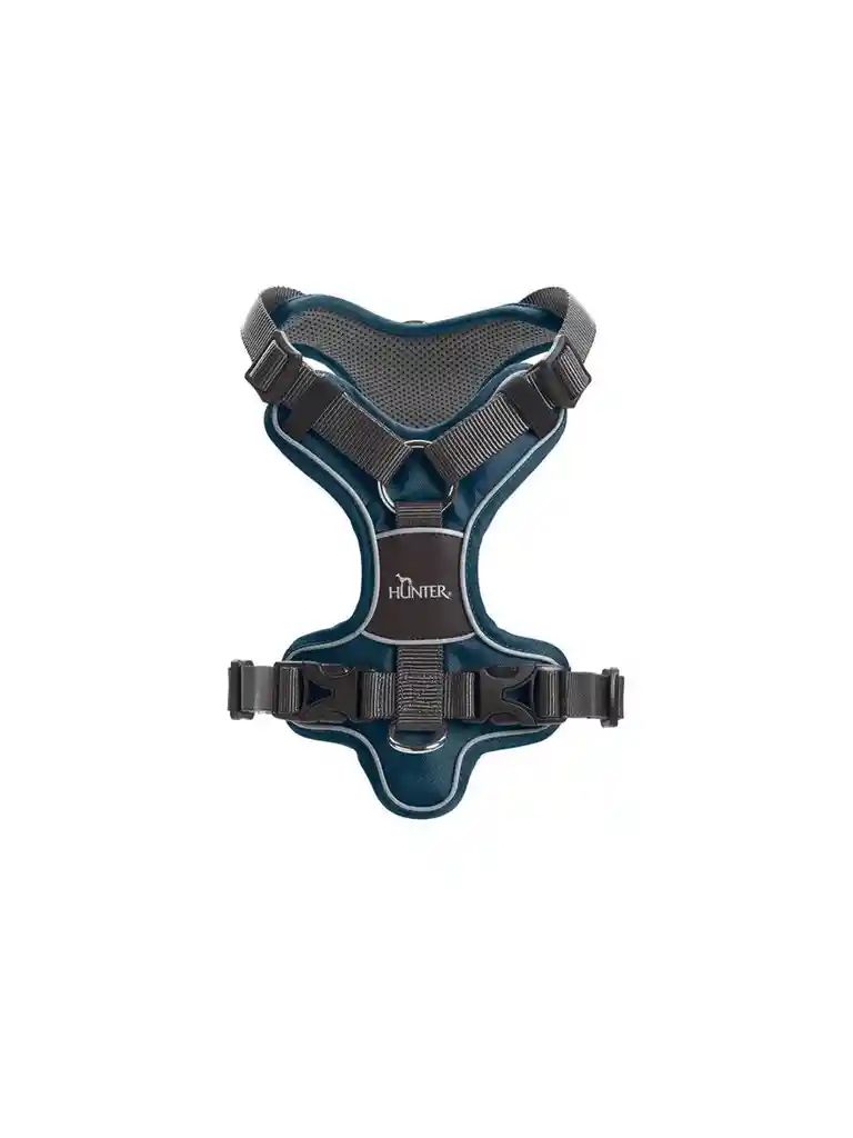 Arnés para perros ergonómico Hunter Divo El arnés Divo es cómodo y transpirable con un ajuste ergonómico, colores brillantes y presenta el material reflectante 3M™ Scotchlite™ en toda su longitud para mantenerlo a usted y a su perro seguros en malas condiciones. Adecuado para deportes al aire libre, aventuras o uso diario con un segundo anillo alternativo en el pecho, así como en la espalda del perro, para un punto de anclaje adicional. Se puede personalizar completamente según las necesidades de su perro con 5 puntos ajustables para una máxima comodidad para su perro. Se puede combinar con la correa ligera Divo , la correa de entrenamiento Divo o el collar Divo o perfecto por sí solo. Beneficios clave: Hecho de nailon/poliéster cómodo y transpirable. Incluye elementos reflectantes. Todas las hebillas y clips colocados lejos de la piel de su perro. El estilo de paso hace que el arnés para perros sea fácil de poner.