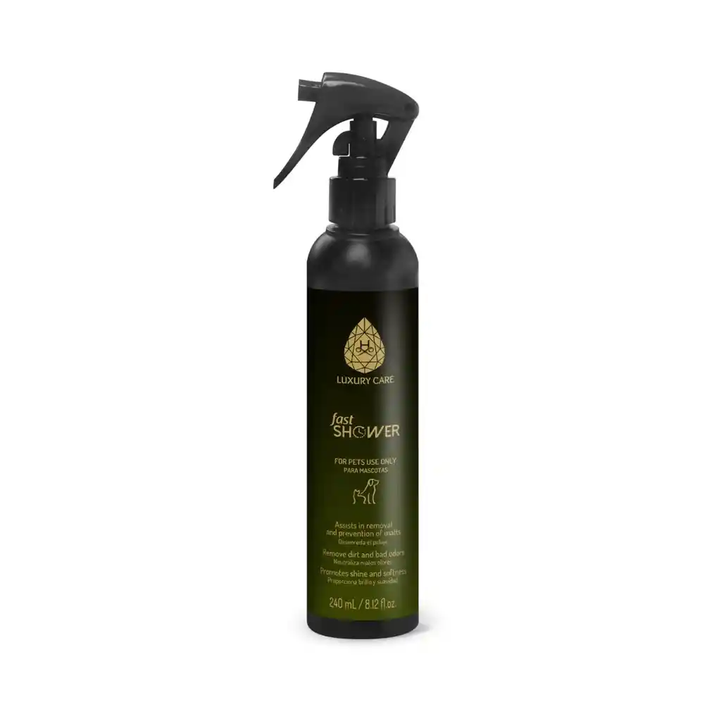 Hydra Luxury Care Fast Shower Higieniza a tu mascota entre baños de manera fácil y ecológica con LUXURY CARE Fast Shower, spray que no requiere enjuague, simplemente hay que rociar sobre el manto de su perro o gato y cepillar. Contiene un activo neutralizador que elimina el mal olor y otros activos especiales que facilitan el cepillado y previenen la formación de nudos. Perfecto para una limpieza rápida y eficiente después de cualquier día de juego en el parque. ¡No solo te encantará el resultado sobre su pelo, también el olor que le proporciona, gracias al agradable aroma característico Luxury Care! Beneficios Con activo neutralizador de olores Contiene activos acondicionantes Indicado para perros y gatos de todas las razas que presentan suciedad en el manto Acción 5 en 1: Desenreda -Elimina la suciedad - Neutraliza malos olores - Proporciona brillo - Proporciona suavidad Ingredientes: Aqua, Fragrance, Saccharomycesferment, Panthenol, Phenoxyethanol/Ethylhexylglycerin, Dissodium EDTA and Poliquaternium-47