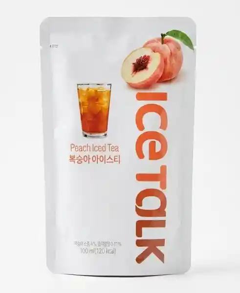 Ice Talk Peach (Durazno) es una bebida de té helado coreano con sabor dulce y refrescante, que combina té negro con un intenso aroma a melocotón. Su práctico formato en sachet es ideal para llevar y disfrutar bien frío.