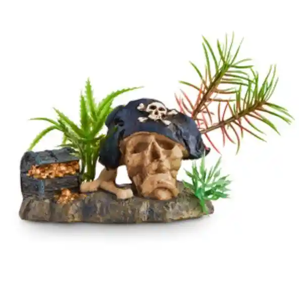Imagitarium Cráneo de Pirata Con Planta Abre un Cofre Del Tesoro de Texturas Estimulantes Para Que su Tripulación Subacuática lo Descubra. Manteniendo su Tanque en la Cubierta Con Encanto Este Cráneo Entierra el Aburrimiento Como Una Superficie Para Estremecer Sus Riquezas al Tiempo Que Proporciona un Espacio Apartado Para Anclar Cuando se Siente Estresado. Beneficios: Decoración Acuática de Calavera Pirata. Mejora su Atmósfera Como un Espacio Atractivo Para Explorar y Ayudar a Aliviar el Aburrimiento Proporciona un Refugio Donde Los Peces Pueden Esconderse y Descansar Para Ayudar a Combatir el Estrés y la Fatiga. Seguro Para Ambientes de Agua Dulce y Salada. Agrega Profundidad y Diseño Natural a su Acuario.
