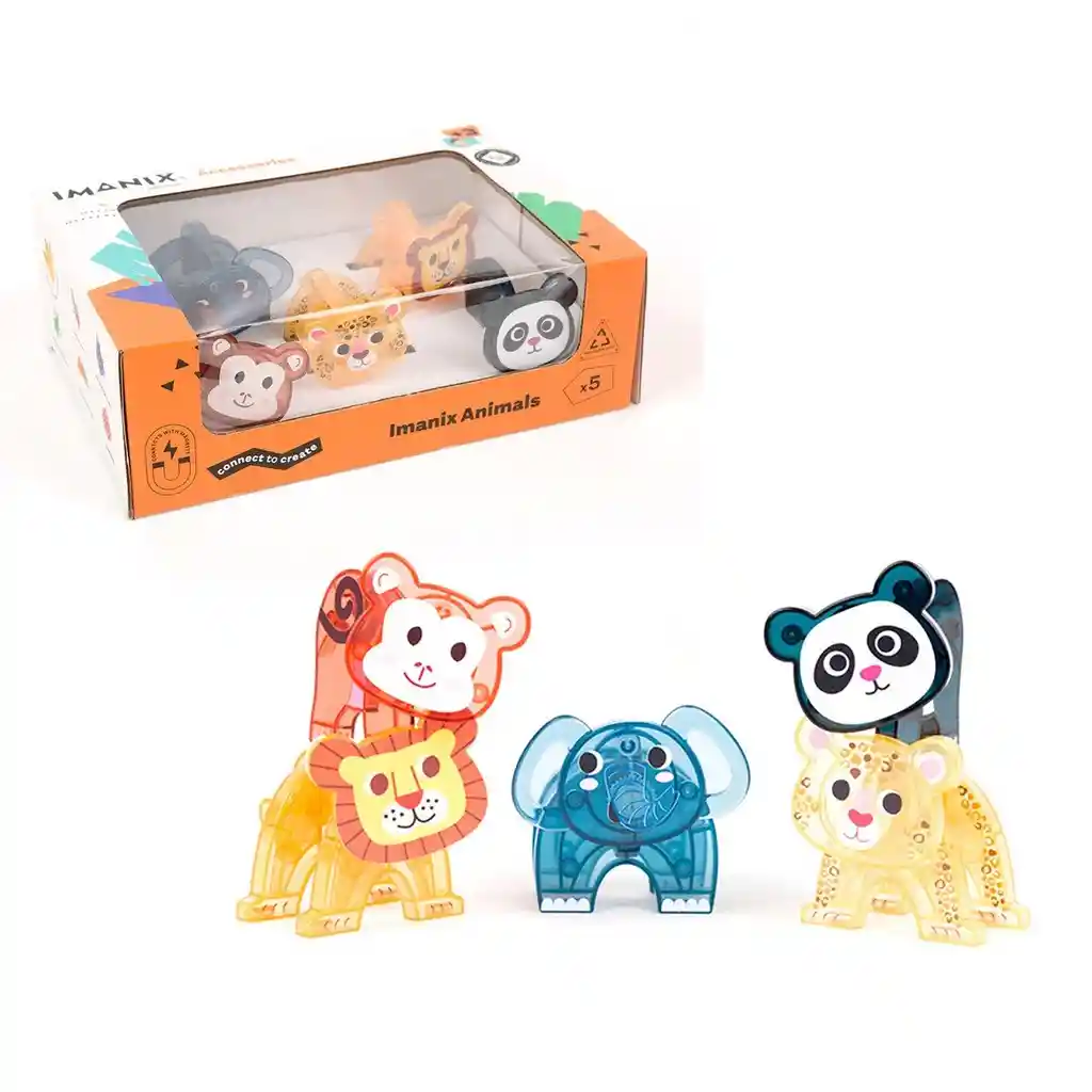 En primer lugar, imagina los infinitos escenarios que podrás recrear con estas figuras de animales. Desde la majestuosidad de los leones y elefantes en la sabana africana, hasta la ternura de los monos y osos pandas en tu propio hogar. Por otro lado, cada figura te transportará a diferentes paisajes y despertará tu imaginación. Además de su encanto visual, estas figuras de animales están equipadas con imanes incorporados. Por eso, podrás unirlas a tus construcciones de IMANIX de manera sencilla y segura. Las posibilidades son infinitas, ya que podrás crear escenas de juego más emocionantes y añadir un toque de autenticidad a tus historias. Este set incluye: 1 Elefante 1 Leopardo 1 León 1 Mono 1 Oso Panda No esperes más y sumérgete en el fascinante mundo de la fauna con las figuras de animales de IMANIX. Descubre cómo estas piezas magnéticas se convierten en el complemento perfecto para tus creaciones, brindándote una experiencia de juego única y llena de diversión. *Todos los animales cuentan con pies magnéticos y cabeza giratoria."