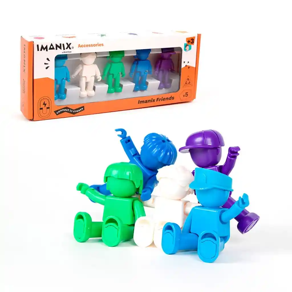 Imagina un mundo lleno de posibilidades donde los personajes cobran vida. Por eso, con IMANIX Friends Fun, podrás crear escenas y situaciones divertidas con solo un movimiento magnético. Además, estas figuras magnéticas se adhieren fácilmente entre sí, permitiéndote construir y combinar de manera creativa. ¡Las conexiones magnéticas hacen que el juego sea aún más emocionante Además de ser entretenidos, estos personajes magnéticos de IMANIX son educativos. A través del juego, los niños pueden desarrollar habilidades motoras, coordinación mano-ojo y estimular su imaginación. De hecho, cada figura magnética representa una oportunidad para explorar diferentes personalidades y roles, fomentando el desarrollo de habilidades sociales y narrativas. IMANIX Friends Fun viene con 5 personajes magnéticos, cada uno con su propio estilo y actitud. Estos incluyen: Cabeza giratoria. Manos y pies flexibles. Base magnética. En resumen, ¡Deja que tu imaginación vuele y crea historias con estas figuras magnéticas de IMANIX! Combínalas, intercambia piezas y diviértete construyendo un universo lleno de diversión y amistad. ¡Los IMANIX Friends Fun están aquí para hacer que tus juegos sean más emocionantes y coloridos! Por eso, no pierdas el tiempo y agrégalos a tu carrito. "