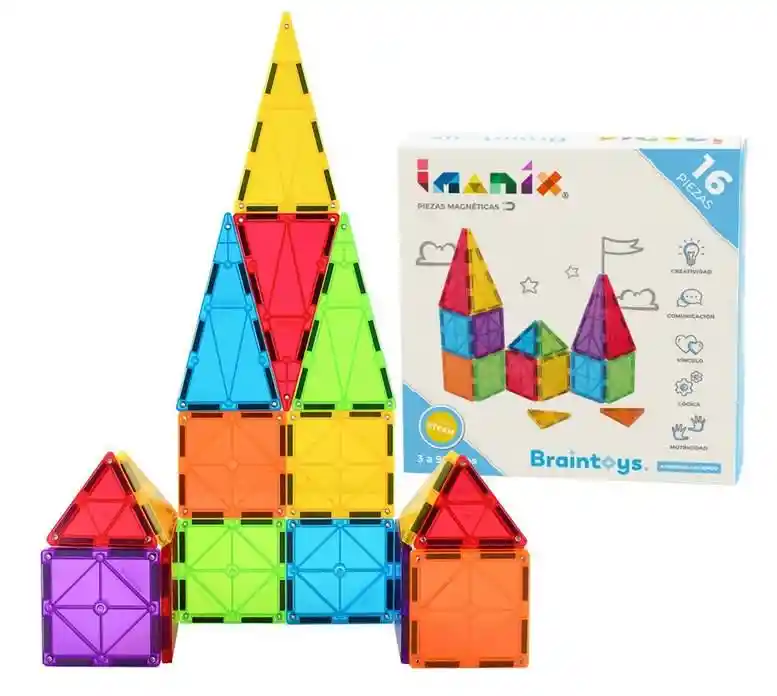 Esta nueva version incluye imanes más grandes y fuertes, aristas interiores que refuerzan las piezas y remaches metálicos que garantizan una experiencia de juego 100% segura. Juego didáctico, entretenido y educativo, que invita a crear todo tipo de figuras geométricas en 2D y 3D. Gracias a sus colores, formas y fácil manipulación, los niños podrán hacer infinitas construcciones, estimulando y desarrollando su creatividad e imaginación. La fuerza de los imanes hace que las piezas se atraigan fácilmente, logrando que niños de todas las edades jueguen durante horas, permitiéndoles aprender conceptos de geometría y matemáticas. Con Imanix los niños explorarán una nueva forma de entretención, potenciando sus habilidades, estimulando el cerebro y aumentando su concentración. Todas las piezas están fabricadas de plástico no tóxico. Pensado para personas de 3 a 99 años.