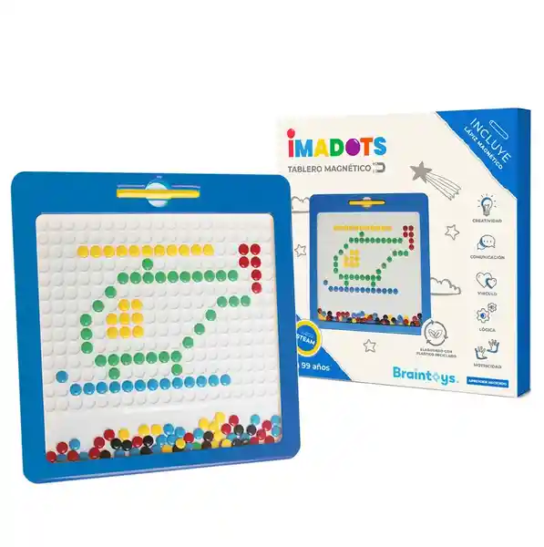 Ubica el Lápiz Magnético Sobre la Cubierta de Plástico Transparente Selecciona la Ficha Que Quieras Mover y Deslízala Para Crear Tus Propios Diseños o Los Patrones Propuestos en Las Tarjetas. Imadots es la Perfecta Combinación Entre Precisión Concentración y Diversión. El Imadots Mide 33 x 33 cm e Incluye 10 Tarjetas Dobles Con 20 Desafíos. Todas Las Piezas Están Fabricadas de Plástico no Tóxico. Pensado Para Personas de 3 a 99 Años.