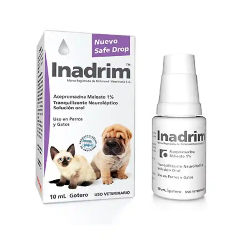 INDICACIONES: Solución oral, está indicado como agente sedante (tranquilizante) para perros y gatos. COMPOSICION: Acepromacina Maleato: 1 g; Excipientes c.s.p. 100 mL ACCION: Tranquilizante neuroléptico. DOSIFICACION: Perros: 1 a 4 gotas por kg de peso vía oral. Gatos: 2 a 4 gotas por kg de peso vía oral. INTERACCION CON OTRAS DROGAS: No administrar si el animal usa collar antipulgas o se lo baña con productos que contienen organofosforados. No combinar con epinefrina, quinidina ni propanolol. No combinar con protocolos de anestesia epidural CONTRAINDICACIONES Y ADVERTENCIAS: No usar en caso de hipovolemia, shock, en animales que padecen tétanos o intoxicación con estricnina, en animales que sufren convulsiones o que sean sometidos a estudios de médula espinal. En perros la acepromacina produce efectos dependientes de la variación individual y de la raza. Aplicar con precaución en razas gigantes, braquicefálicas, greyhounds, bóxers, animales jóvenes y en aquellos debilitados. Se sugiere combinar con atropina. Utilizar dosis menores cuando el paciente tenga problemas hepáticos o cardíacos. CONTIENE: 10ml