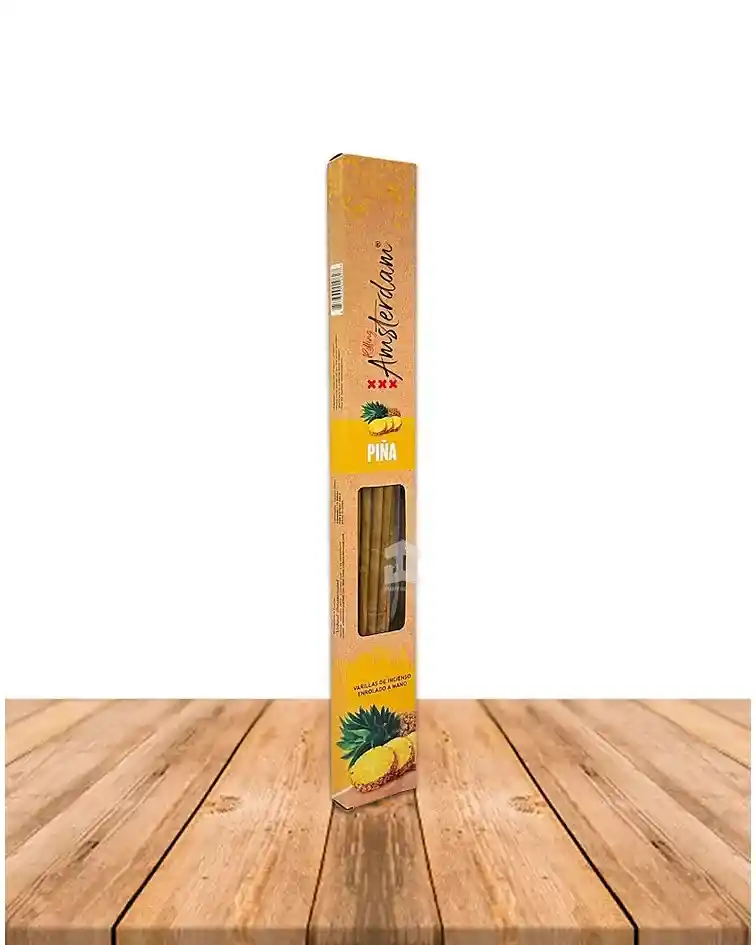 Incienso Rolling Amsterdam Mediano 41 Cm hecho a mano con hierbas, aceites esenciales, resinas para darte una experiencia saludable y segura y excelente aromas . Una muestra de la maestría en el arte de hacer incienso. Crea un agradable ambiente natural ideal para la relajación y la meditación. Efecto Blunt. Tiempo de combustión de aproximadamente 2 Horas, dependiendo de las condiciones Aroma: Piña Medidas Varita: 41 cm de largo x 0.5cm de Ancho Peso: 77gr (cada sobre ). Cantidad Entre: 10 varas Aprox. por cajita