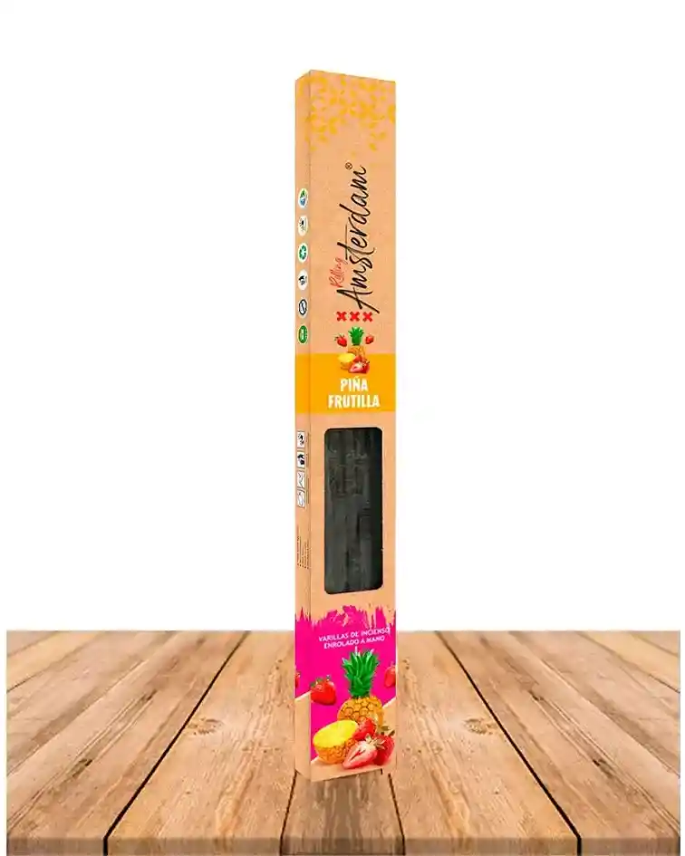 Incienso Rolling Amsterdam Mediano 41 Cm hecho a mano con hierbas, aceites esenciales, resinas para darte una experiencia saludable y segura y excelente aromas . Una muestra de la maestría en el arte de hacer incienso. Crea un agradable ambiente natural ideal para la relajación y la meditación. Efecto Blunt. Tiempo de combustión de aproximadamente 2 Horas, dependiendo de las condiciones Aroma: Piña Frutilla Medidas Varita: 41 cm de largo x 0.5cm de Ancho Peso: 77gr (cada sobre ). Cantidad Entre: 10 varas Aprox. por cajita