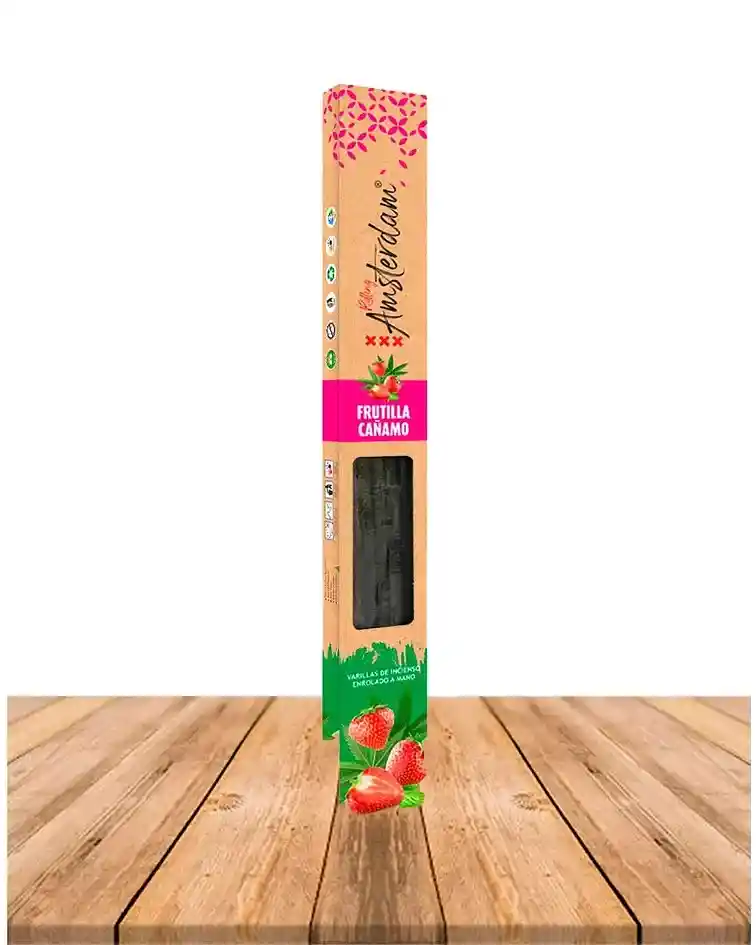 Incienso Rolling Amsterdam Mediano 41 Cm hecho a mano con hierbas, aceites esenciales, resinas para darte una experiencia saludable y segura y excelente aromas . Una muestra de la maestría en el arte de hacer incienso. Crea un agradable ambiente natural ideal para la relajación y la meditación. Efecto Blunt. Tiempo de combustión de aproximadamente 2 Horas, dependiendo de las condiciones Aroma: Frutilla Cáñamo Medidas Varita: 41 cm de largo x 0.5cm de Ancho Peso: 77gr (cada sobre ). Cantidad Entre: 10 varas Aprox. por cajita