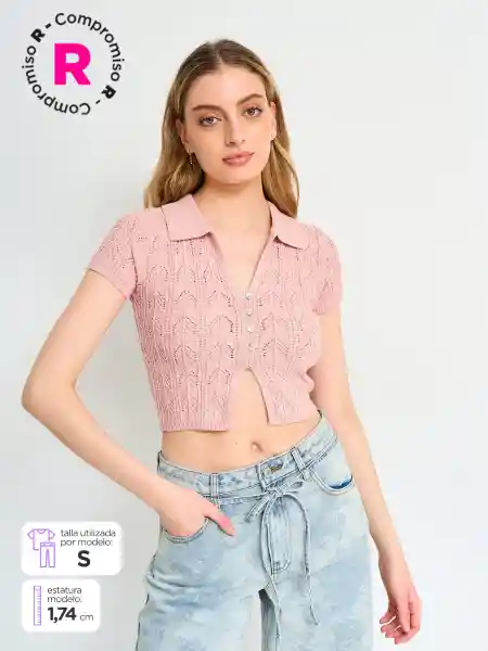 Index Polera Manga Corta Deboton Cor Rosado S P4 S25