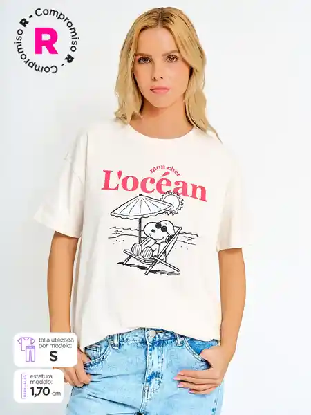 Index Polera Manga Corta Emsnoopy6 Color Crema M S25