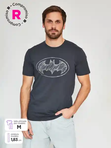 Index Polera Manga Corta Lic D-E Batman 1 Gris Oscuro S SS25