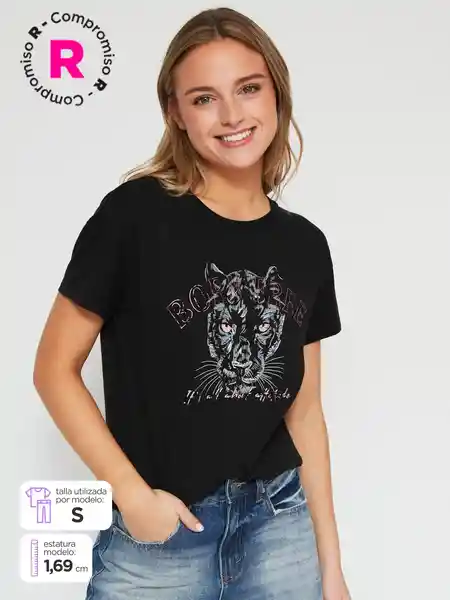 Index Polera Manga Corta Party h c Ess Black M S25