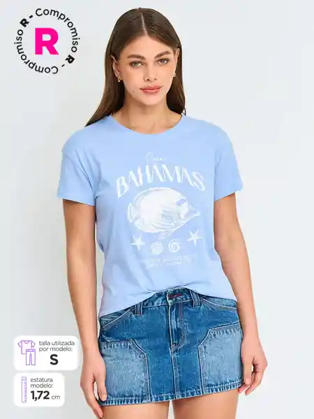 Index Polera Manga Corta Party H e Ess Celeste M S25