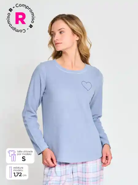 Index Polera Top Manga Larga Polar Sólido fb Denim L I25