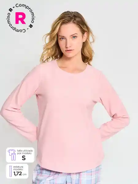 Index Polera Top Manga Larga Polar Sólido fb Rosado S I25
