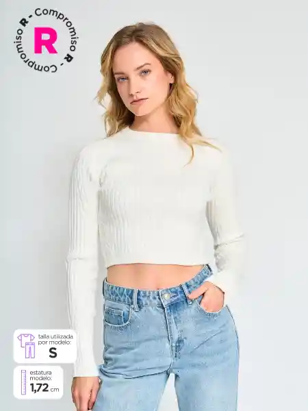 Index Sweater Manga Larga Trenzas Ecru M S25