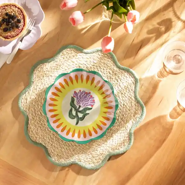 De Fibra Con Forma de Flor y Borde de Color Tiene un Diámetro de 38 cm.