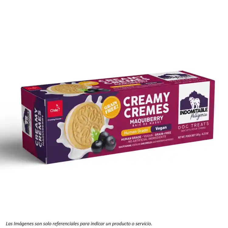 Galletas Horneadas con fórmula Vegana he Ingredientes de Grado Humano, totalmente innovadoras y muy saludables para tu Mascota. Elaboradas con sabor Vainilla y rellenas de crema sabor Maqui, muy deliciosas, especial para Perros de todas las Edades y Razas, más aún para quienes sufren de alguna intolerancia alimenticia ya que no contiene ingredientes de procedencia animal (carnes) y no contiene los típicos rellenos que generan reacciones adversas como la soya el trigo y/o maíz.