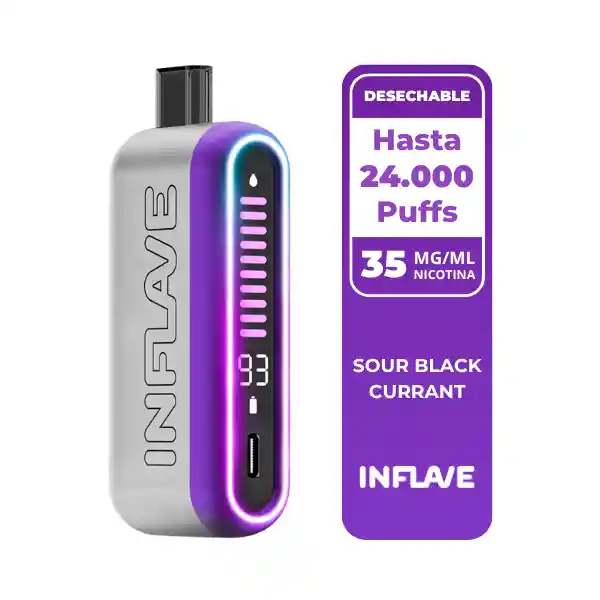 El Inflave Onyx Sour Black Currant 24 000 Puffs ofrece el sabor ácido e intenso de la grosella negra con un toque frutal profundo. Con 35 mg de sales de nicotina, pantalla digital lateral y carga USB-C, brinda hasta 24 000 caladas con estilo y potencia.