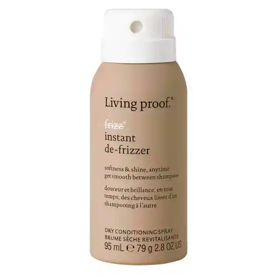 No Frizz Instant De-Frizzer Living Proof Spray Controlador del Frizz Spray ligero que elimina hasta el 92% de frizz en cabello seco, dejando el cabello suave, manejable y brillante. Ideal para utilizar en cualquier momento y lugar, no estropea el peinado ni añade peso. Aporta protección UV. ¿Qué hace? - Aporta protección UV - Aporta brillo - El cabello queda disciplinado al instante Modo de Uso Uso en cabello seco. En el cabello medio o grueso: mantén el spray a 15-25 cm y rocía en el cabello seco con un movimiento de barrido hacia las puntas. Suaviza el estilo peinándolo con los dedos o un peine. En cabello fino: centra la aplicación en medios y puntas. Rocía el spray en tu mano y aplícalo con los dedos a secciones específicas. Peinar el cabello con los dedos o cepillar. 95 Ml