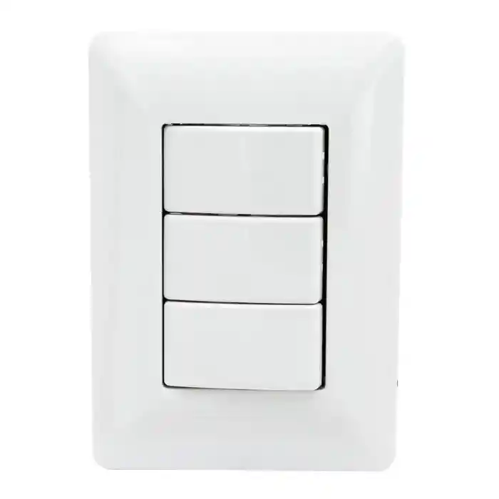 Módulo de interruptor triple para muro marca Philco, modelo 78561, de 10Amp y 250Volt, ideal para mejorar tu hogar, cuenta con certificación SEC. Incluye dos tornillos para su instalación. Características: Corriente nominal: 10 A Voltaje nominal: 250V Cantidad de polos: 2 Cantidad de módulos: 3 Tipo de interruptor: Palanca Material: Plástico Color: Blanco Modelo: 78561 Modelo detallado: 19PLC78561 certificación: E-013-01-112874 Marca: Philco SKU Tecnocenter: 7892