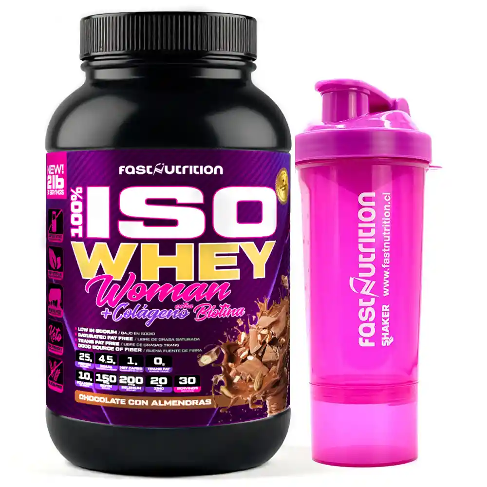 Nueva Proteína Iso Whey Woman + Colágeno Extra Biotina 25g de proteína. 6g de Aminoácidos ramificados (BCAAs). 10g de Colágeno. 150mg de Biotina. 20mg de Zinc. Principales Características: 0g Carbohidratos Netos. 0g Grasas Trans. ENDULZADO CON ESTEVIA. LIBRE DE GLUTEN. AMIGABLE CON DIETAS KETO. BOVINO ALIMENTADO CON PASTO. LIBRE DE HORMONAS. LIBRE DE GMO. LIBRE DE PESTICIDAS.