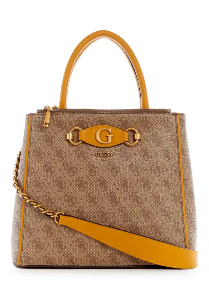 Modelo: SB865406. Cartera con doble asa de mano y correa ajustable al hombro. Diseño de tono liso con estampado Guess. Bolsillos con cierre de cremallera. Materiales: 100% PU.