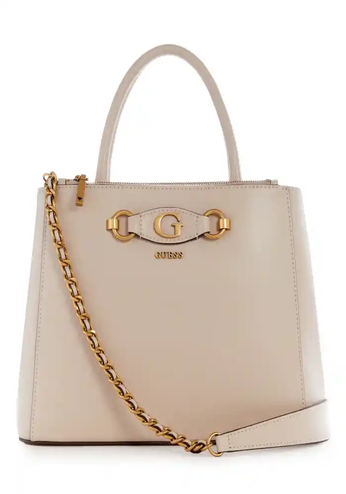 Modelo: VB865406. Cartera con asa y correa ajustable al hombro. Diseño de tono liso con letras Guess metalicas. Bolsillo con cierre de cremallera. Materiales: 100% PU.