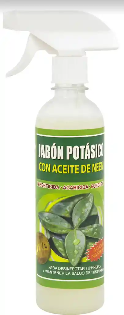 Producto listo para usar. Solo agitar antes de usar. El jabón potásico con aceite de neem de 350cc es una solución natural y efectiva para el cuidado de tus plantas y el control de plagas. Este producto artesanal combina las propiedades insecticidas del jabón potásico con las cualidades antifúngicas y repelentes del aceite de neem, asegurando que tus cultivos se mantengan sanos y vigorosos. Su práctico envase con aspersor facilita su aplicación, permitiendo una distribución uniforme y controlada. Ideal para jardineros y amantes de la naturaleza, este jabón es seguro para el medio ambiente y no representa un riesgo para las aves, insectos benéficos ni para tus mascotas. Este jabón actúa por contacto, eliminando plagas como pulgones, trips y arañitas, al mismo tiempo que protege contra enfermedades foliares. Su uso regular promueve un crecimiento saludable al fortalecer las defensas naturales de las plantas. Con una formulación biodegradable, contribuyes a un cuidado responsable del entorno mientras obtienes resultados visibles en tus cultivos. Descubre cómo este jabón potásico con aceite de neem puede transformar tu experiencia de jardinería.