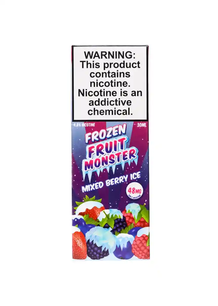 Mixed Berry Ice de Fruit Monster, mezcla frambuesas, moras y el arándanos brindando ese sabor fuerte y dulce que equilibra todas las notas, en perfecta armonía para un sabor realmente estimulante. Además, ¡incluye un fuerte toque mentolado que te despeinará por completo!