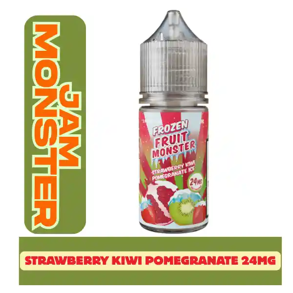 Jam Monster Strawberry Kiwi Pomegranate 24 mg es un salt nic con perfil de fresa, kiwi y granada. Mezcla frutal equilibrada con notas dulces y ácidas. Formato compatible con dispositivos diseñados para sales de nicotina.