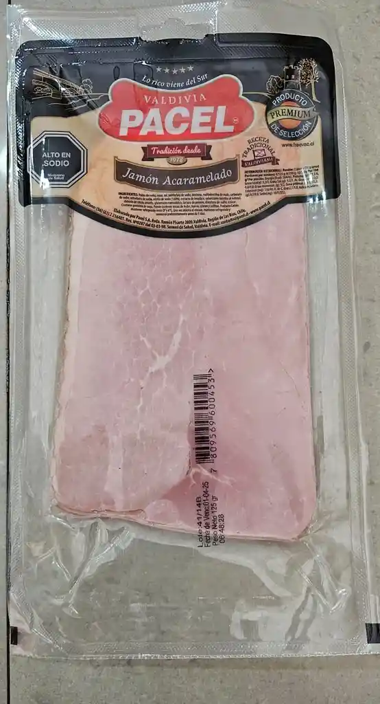 Jamón acaramelado premium de Valdivia. Paquete de 125 gr