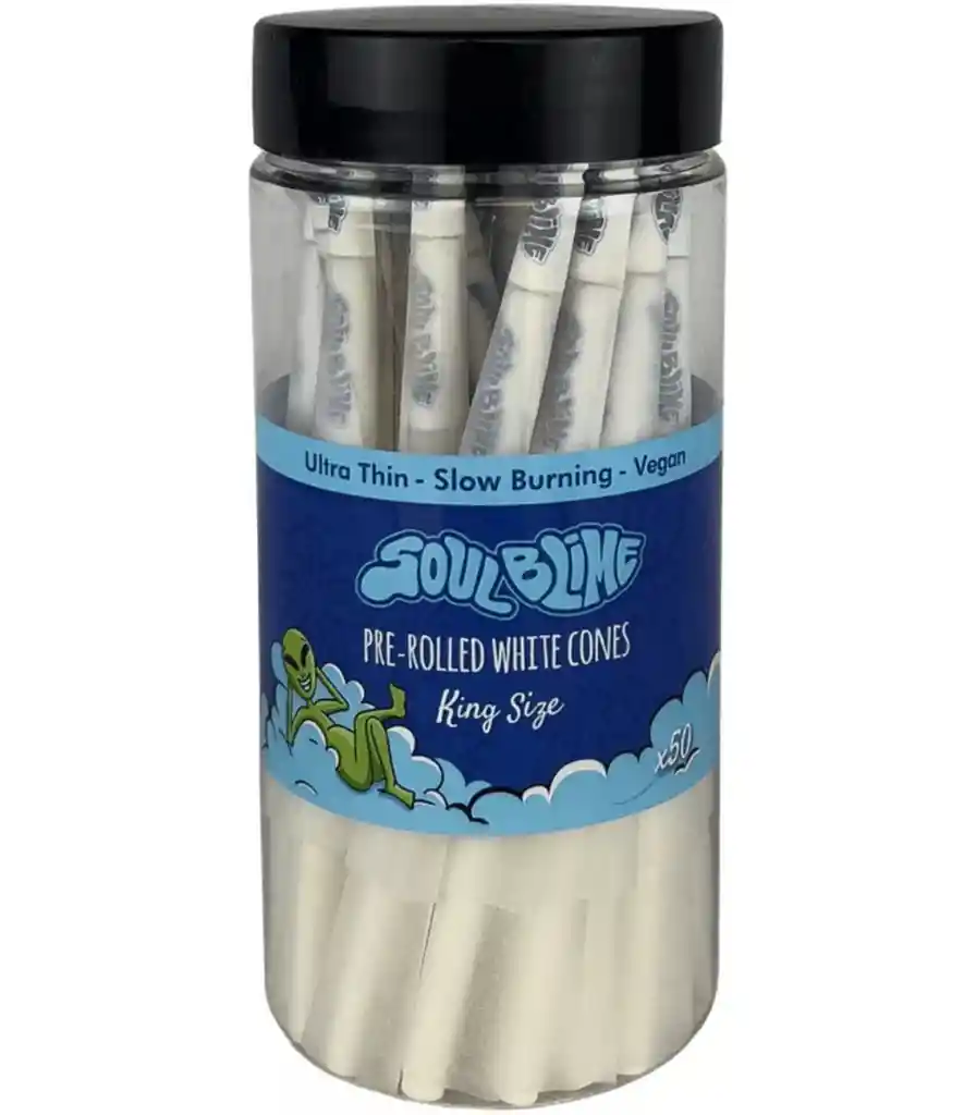 El Jar de Conos Pre-enrolados Soulblime es la solución ideal para quienes buscan comodidad y estilo en el momento de preparar sus sesiones. Este práctico envase incluye 50 conos pre-enrolados de alta calidad, diseñados para ofrecer una experiencia uniforme y agradable. Los conos están disponibles en colores rosa y blanco, permitiendo personalizar la experiencia visual según las preferencias del usuario.
