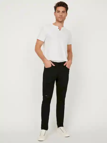 Para Hombre de Tiro Medio Con Cierre de Cremallera y Botón. Diseño en Tono Liso Con Abertura Decorativa a Nivel de la Rodilla. Con Cinco Bolsillos Tres Delanteros y Dos Traseros. Materiales: 99% Cotton 1% Elastane Spandex.