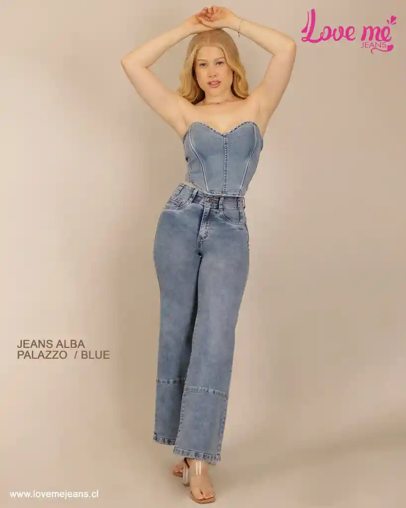 Jeans palazzo, pierna y bota ancha, con costura en la pierna y calce perfecto.