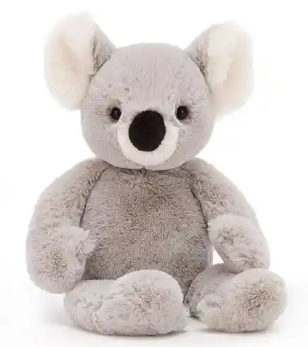 ¡Caramba, qué monada! Benji Koala es adorablemente suave, con pelaje plateado y una gran nariz de regaliz. ¡Este australiano peludo tiene mechones de orejas blancas como la seda y una barriga regordeta por masticar hojas de eucalipto! Un buen compañero. Probado y aprobado por la Norma Europea de Seguridad para juguetes: EN71 partes 1, 2 y 3, para todas las edades. Mide aproximadamente 30 cm de alto. Apto desde el nacimiento. Lavar a mano únicamente; no secar en secadora, lavar en seco ni planchar. No se recomienda limpiar en lavadora.