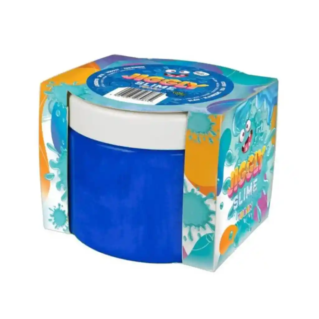 Jiggly Slime – Azul 500g. Slime listo para jugar con una textura interesante. Gracias a sus propiedades es ideal para amasar, estirar y realizar trucos de slime. Jugar con JIGGLY SLIME tiene un efecto positivo en el desarrollo manual y la creatividad de los niños. El producto es completamente seguro. No contiene bórax.