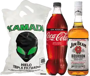 Whisky Jim Beam White 40° 750cc + Bebida 1.5L + Hielo 1Kg