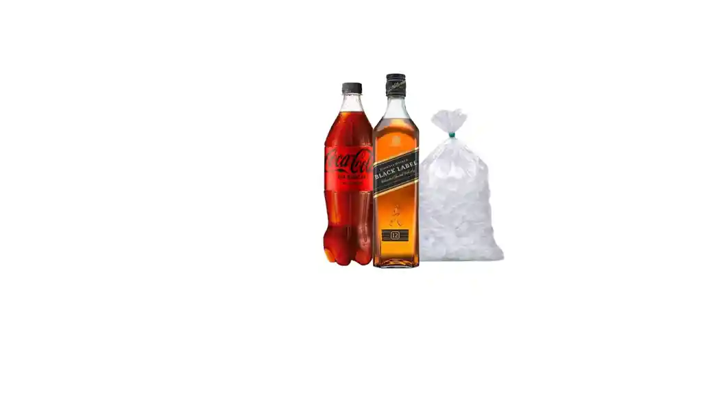 JOHNNIE WALKER BLACK LABEL 750 ML + COCA COLA SIN AZUCAR 1,5LT + HIELO 1KG
