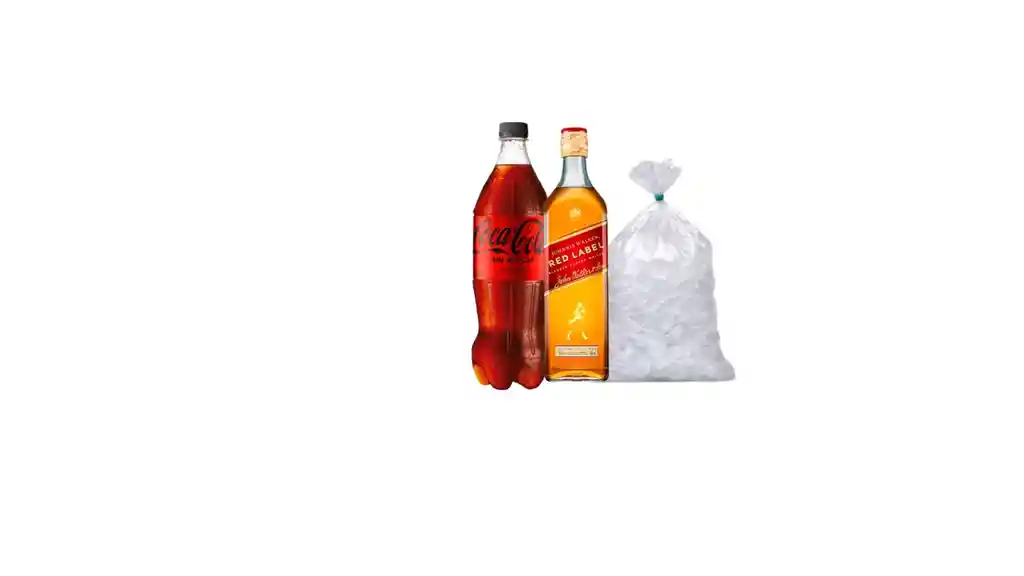 JOHNNIE WALKER RED LABEL 750 ML + COCA COLA SIN AZUCAR 1,5LT + HIELO 1KG