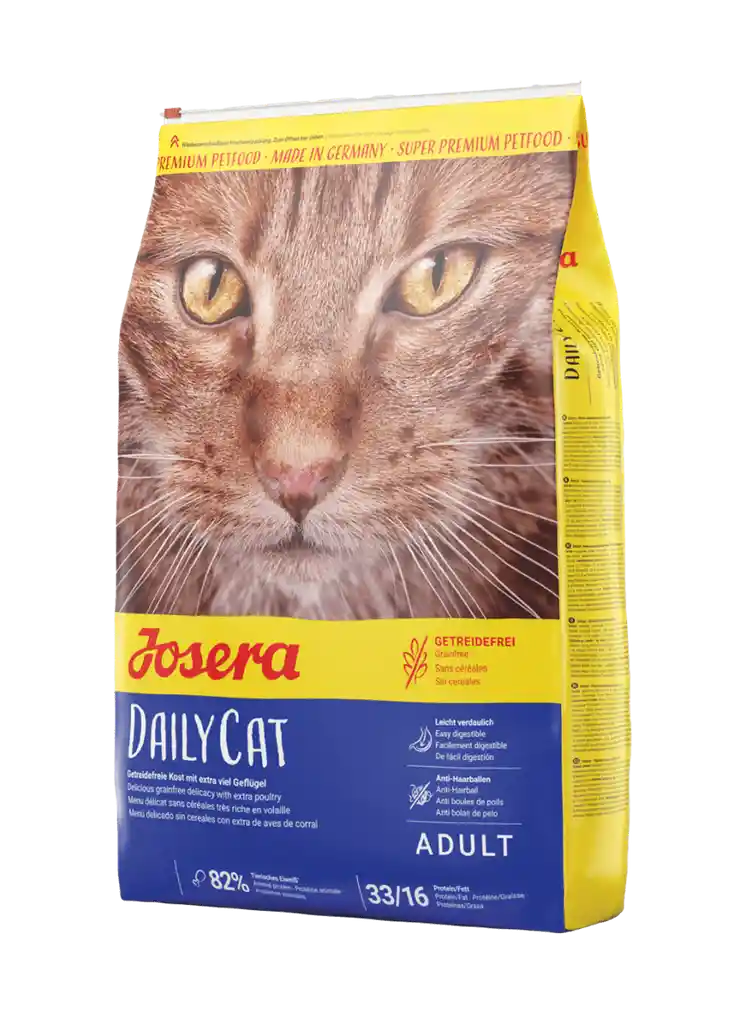 Josera Daily Cat Adult – es un alimento completo para gatos adultos, es adecuado para la alimentación diaria de gatos de interior y exterior. La ración diaria adicional de deliciosa ave según los gustos de su gato